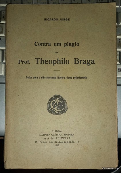 Preço: 30 €Contra um plágio de Theophilo Braga, por Ricardo Jorge.
