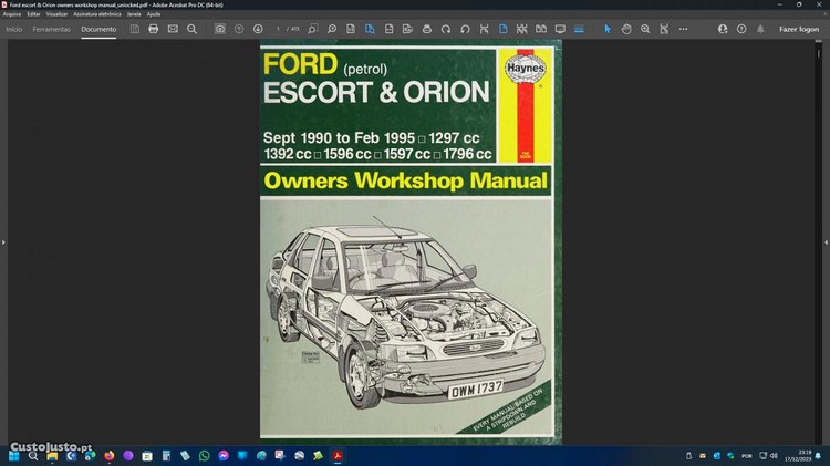 Manual rep Ford Escort& Orion petrol 1990-95
