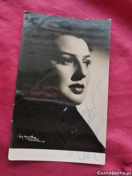 Preço: 3 €Foto marcada e autografada com dedicatória. (Atriz ? não identificada).