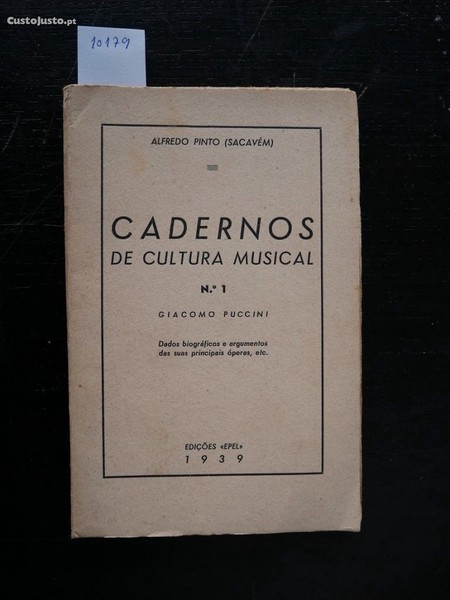 N 10179 Giacomo Puccini. Alfredo Pinto (Sacavém). 149 pgs. 19x13cm. Lisboa. Edições Epel 1939. 60 Pgs. Cadernos de Cultura Musical n 1. Dados Biográficos e Argumentos das suas principais obras. Pequenas manchas e sinais de uso na capa.