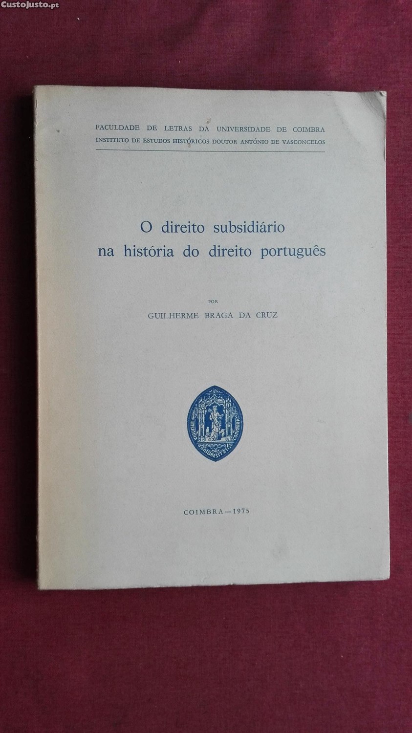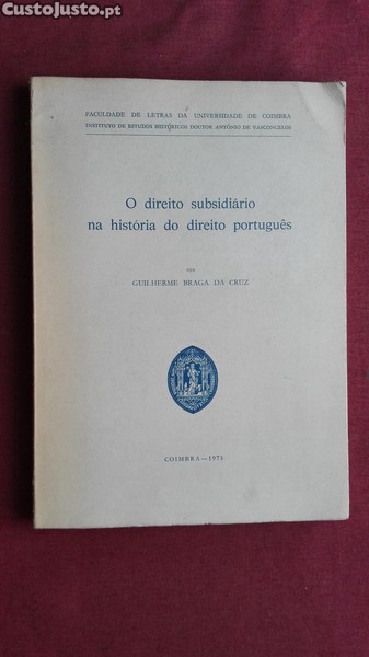 Faculdade de Letras da Universidade de Coimbra (Instituto de Estudos Históricos Doutor António de Vasconcelos)-O Direito Subsidiário na História do Direito Português- por Guilherme Braga da Cruz-Coimbra-1975