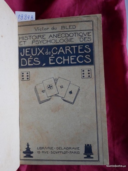 N 18898 Histoire Anecdotique et phisiologic de cartes dés, Écheques. Par Victor du Bled. Paris, Labrairie Ch. Delegrave 1919. 300 Pgs. 13x16cm. Encadernado.