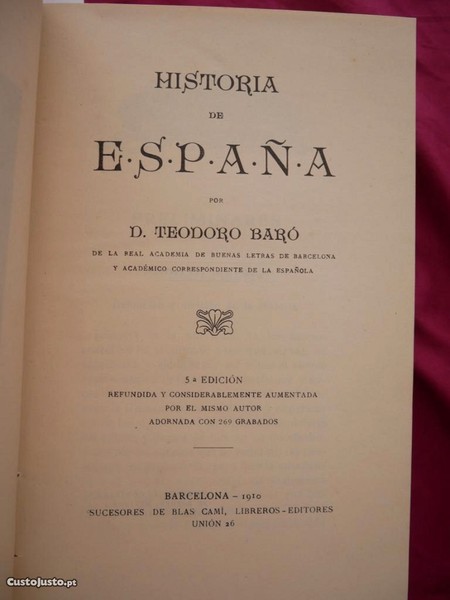 Preço: 25 €História de España por Teodoro Baró. Barcelona1910