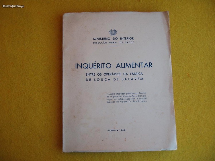 Estudo sobre o inquérito Alimentar entre os operários e famílias, da Fábrica de Louça de Sacavém.