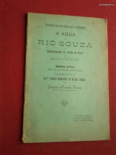 Companhia Geral das Águas para o Estrangeiro-A Água do Rio Souza e o Abastecimento da Cidade do Porto Em Água Potável-Memória Crítica aos Relatórios Officiaes Apresentados à Exma. Câmara Municipal da Mesma Cidade por Joaquim Arantes Pereira-Typographia Occidental de Pimenta,Lopes & Vianna-Porto-s/d