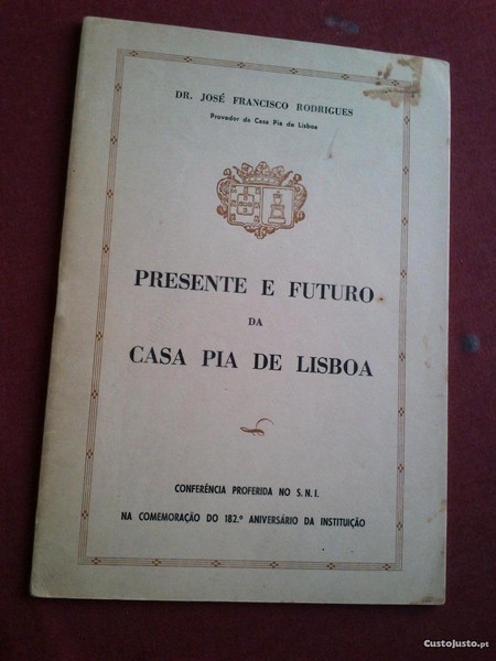 Dr. José Francisco Rodrigues (Provedor da Casa Pia de Lisboa)-Presente e Futuro da Casa Pia de Lisboa-Conferência Proferida no S.N.I. na Comemoração do 182.º Aniversário da Instituição (Perspectivas da Vida da Modelar Instituição Criada por Pina Manique)