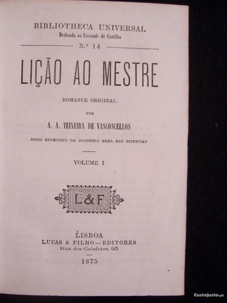 Preço: 59 €Lição ao Mestre - A. A. Teixeira de Vasconcellos - 1875 (Envio grátis)
