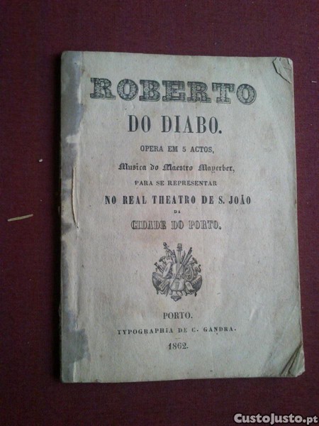 Roberto do Diabo-Ópera Em 5 Actos,Música do Maestro Mayerber,Para se Representar no Real Theatro de S. João da Cidade do Porto-Typographia de C. Gandra-Porto-1862