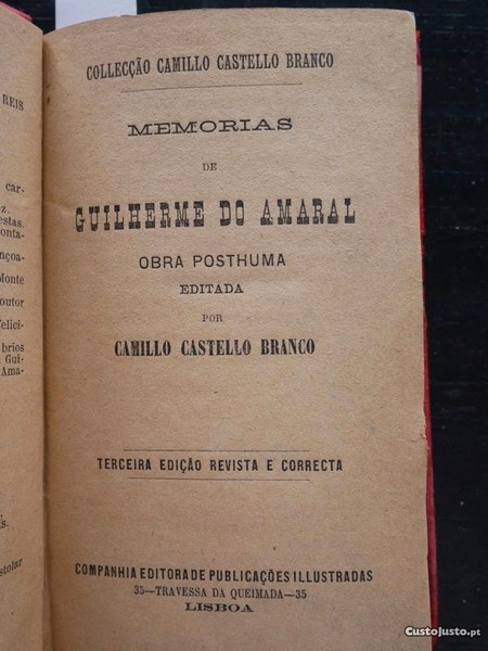 N 10453 Memórias de Guilherme do Amaral. Obra Póstuma por Camillo Castello Branco. 3 Edição revista e correta.