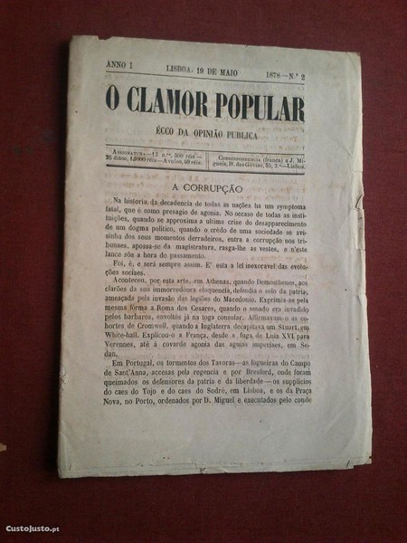 Preço: 15 €O Clamor Popular-Eco da Opinão Pública-N.º 2-1878