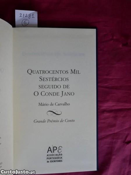 Preço: 12 €Quatrocentos mil Sestércios, seguido de O Conde de Jano por Mário de Carvalho.