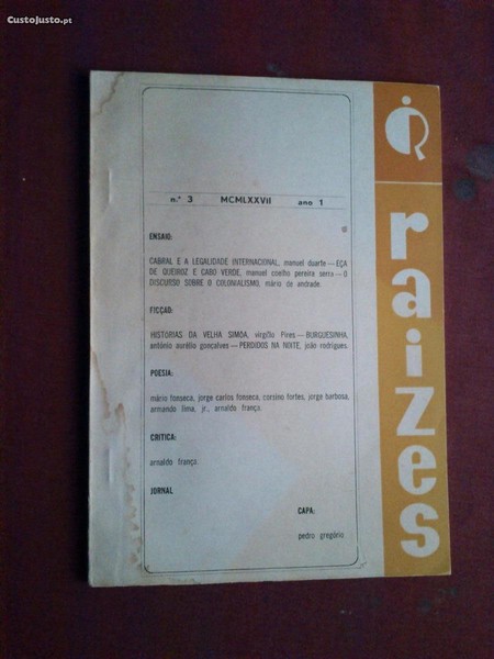 Preço: 10 €Raízes-Publicação Trimestral-Ano 1-N.º 3-Cabo Verde-1977