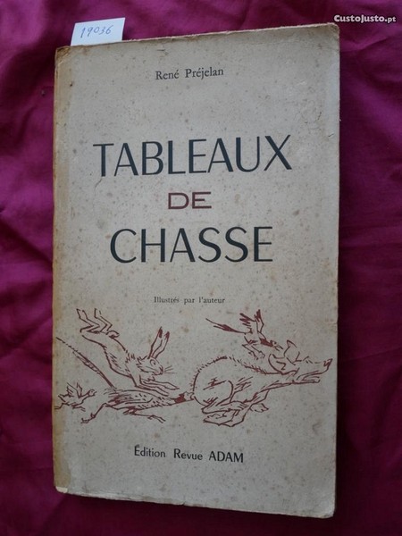 N 19036 René Préjelan, Tableaux de Chasse. Illustrées par lauteur. Édition Revue Adam Paris 1952. 251 Pgs. 15x23cm. Novo por abrir. Lombada consolidada.