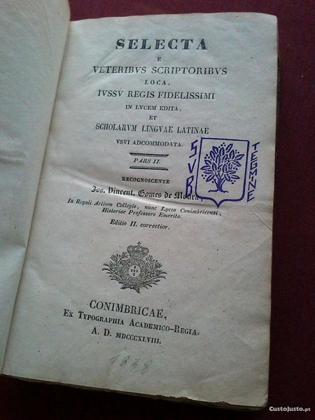 Selecta e Veteribus Scriptoribus Loca,Iussu Regis Fidelissimi In Lucem Edita,et Scholarum Linguae Latinae Usui Adcommodata.Pars II.Recognoscente Jos. Vincent,Gomes De Moura,in Regali Arlium Collegio,nune Lyceo Conimbricensi,Historiae Professore Emerito.Editio Secunda,correctior.conimbricae,ex Typographia Academico-Regia.a.d. MDCCCXLVIII