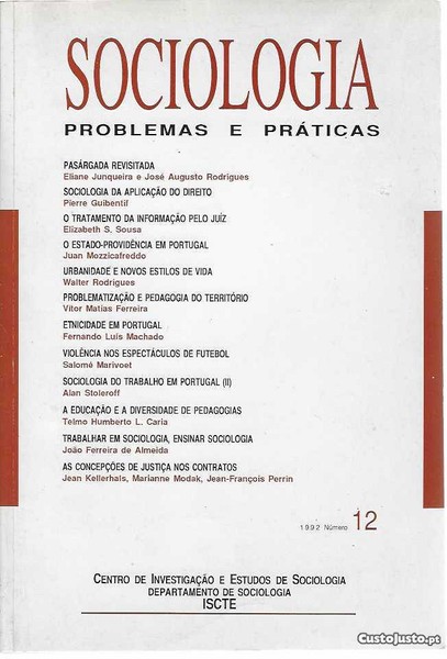 Sociologia Problemas e Práticas, n 12, Centro de Investigação e Estudos de Sociologia - Departamento de Sociologia, ISCTE, 1992, 263 pp.
