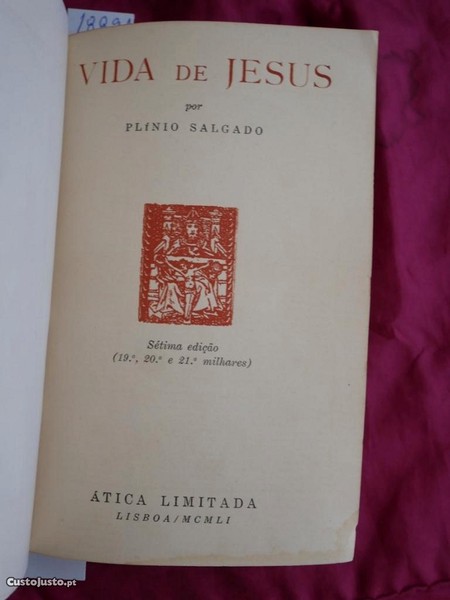 Preço: 25 €Vida de Jesus por Plínio Salgado. Sétima Edição Ática Limitada 1951.