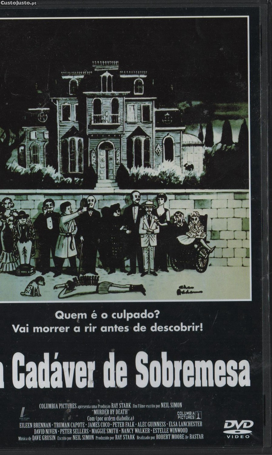 Temos o prazer de convidá-lo a juntar-se a um elenco de estrelas, incluindo Peter Sellers, David Niven, Peter Falk, James Coco, Elsa Lanchester, Maggie Smith, Alec Guiness, Eileen Brennan, Nancy Walker, James Cromwell, Estelle Winwood e Truman Capote (este no seu penúltimo filme), nesta divertida paródia aos policiais, "Um cadáver de sobremesa".