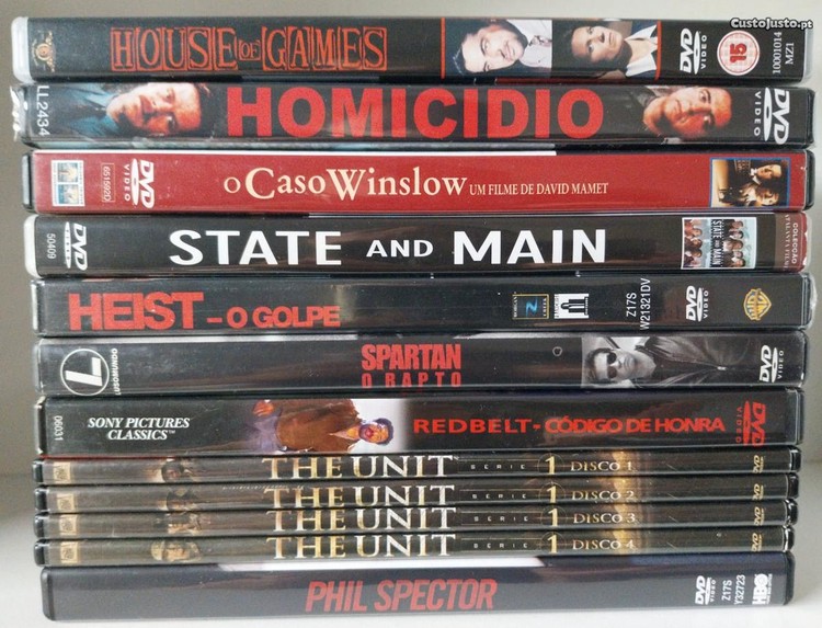 DVDs de filmes de David Mamet, incluindo algumas raridades.