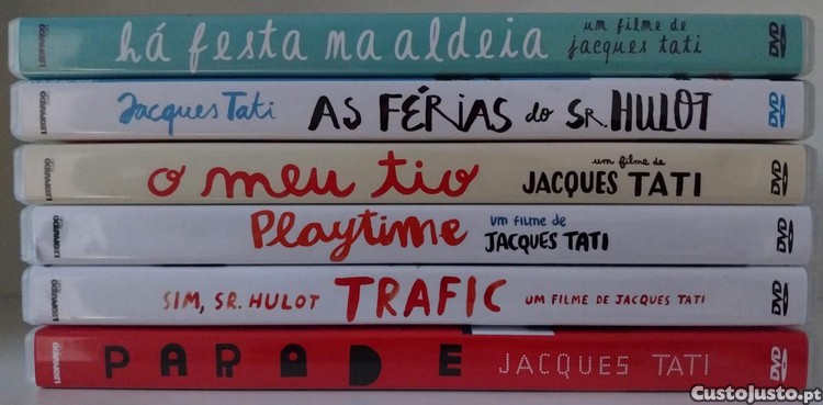 DVDs de filmes de Jacques Tati, incluindo algumas raridades.