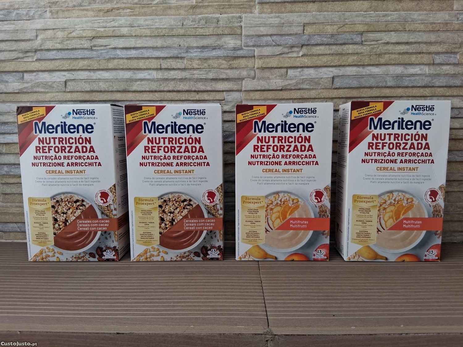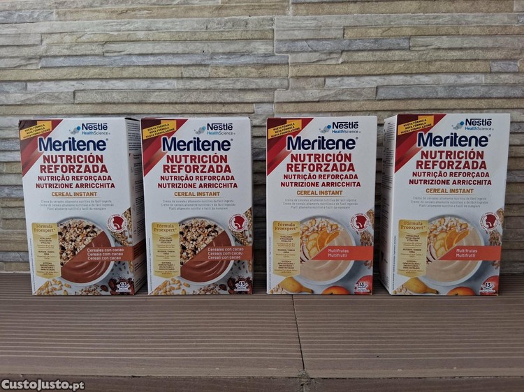 Vende-se conjunto de quatro papas da Marca Nestle e da linha Meritene destinada essencialmente a idosos.