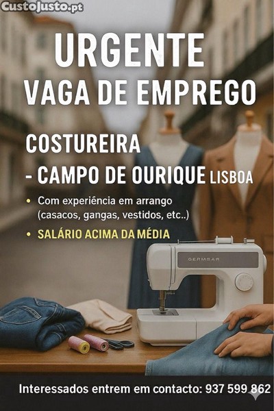 Precisa-se de costureira com experiência em para atelier de arranjo de roupas ( gangas, blazers, vestidos e etc )