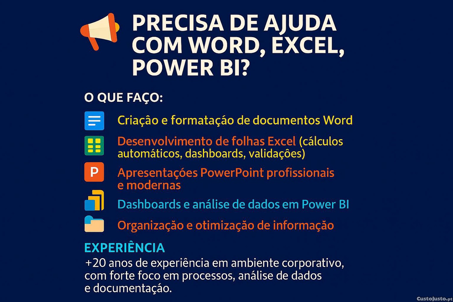 +20 anos de experiência em ambiente corporativo, com foco em processos, dados e documentação.