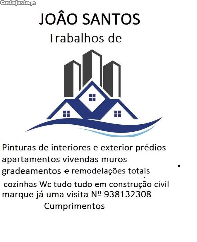 J:Santos Pinturas de interiores e exteriores de prédios vivendas andares muros gradeamentos e portões etc e REMODELAÇÕES TOTAIS cozinhas wc ladrilho chão flutuante pladur canalização electricidade rebocos tijolo, capoto isolamentos etc tudo em construção civil diga o que precisa e nós fazemos orçamentos N 938132308 cumprimentos