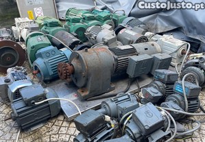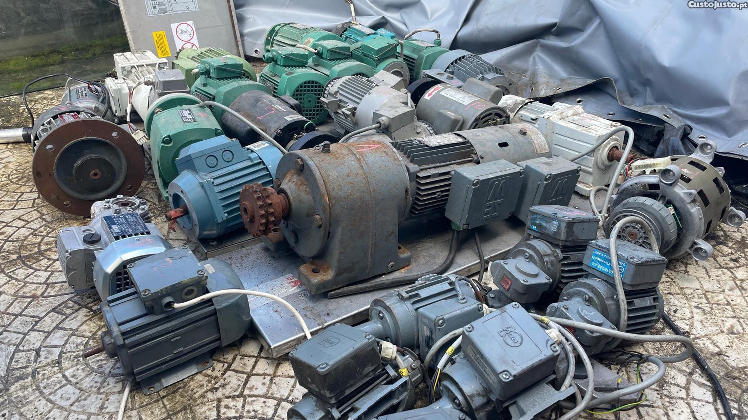 Motores trifásicos com ou sem caixa redutora, com ou sem travão, todos a funcionar, alguns nunca foram aplicados.