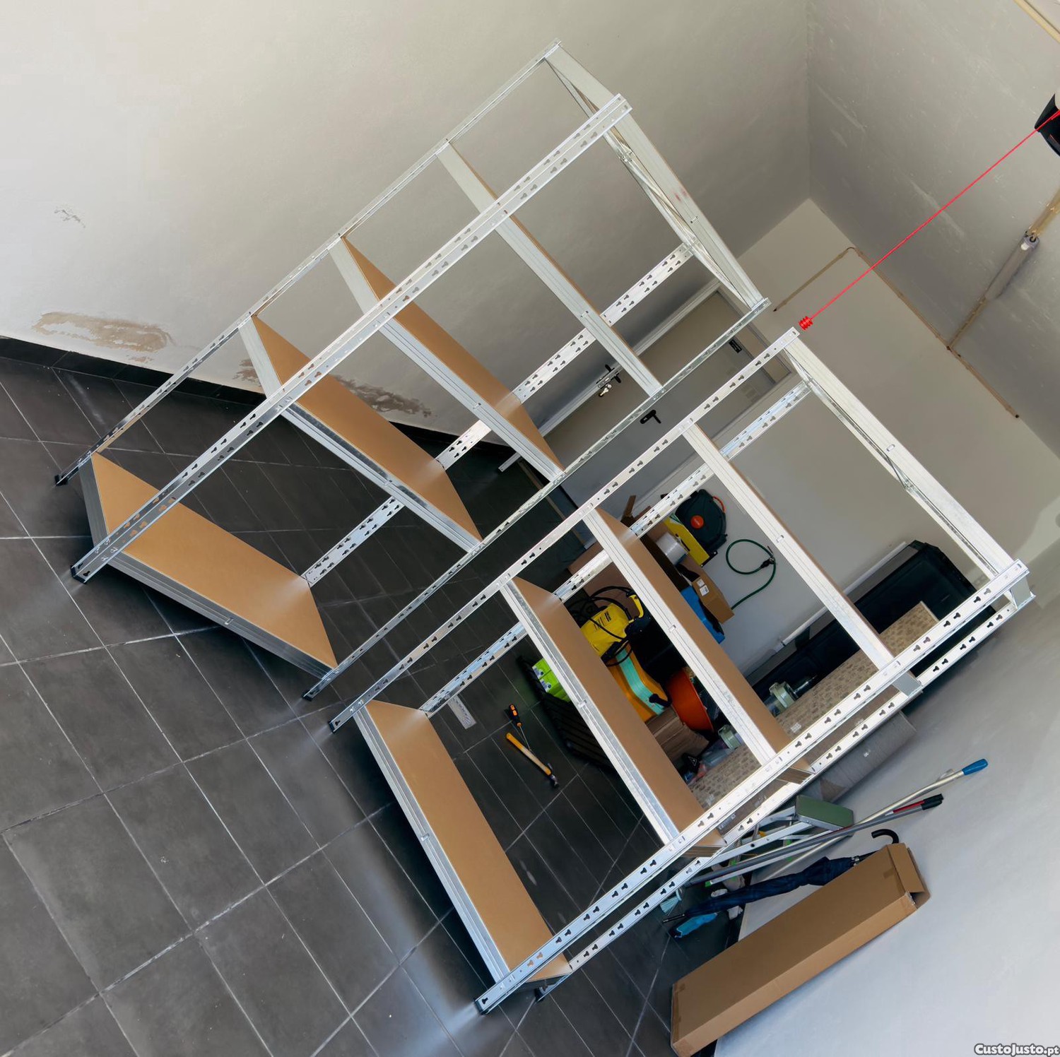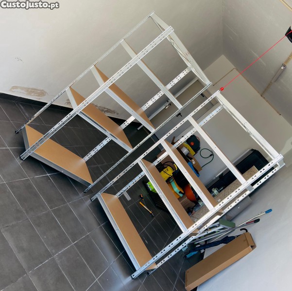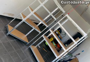 Disponíveis estantes de arrumação novas, ainda em caixa selada, ideais para organização de espaços como garagens, arrecadações, armazéns ou uso doméstico.