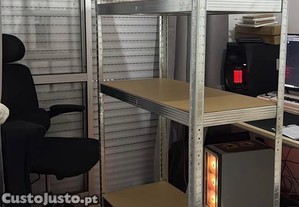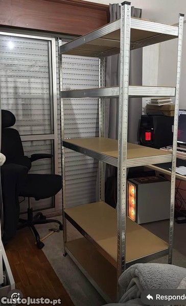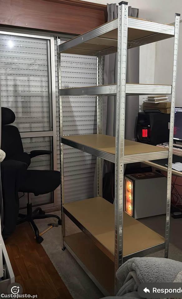 Disponíveis estantes de arrumação novas, ainda em caixa selada, ideais para organização de espaços como garagens, arrecadações, armazéns ou uso doméstico.