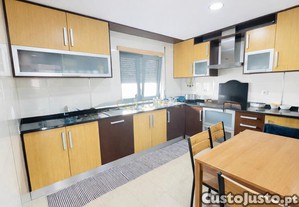 Este apartamento moderno oferece uma cozinha muito funcional, com eletrodomésticos embutidos (frigorífico, maquina de lavar loiça, roupa) exaustor, maquina de secar e microondas.