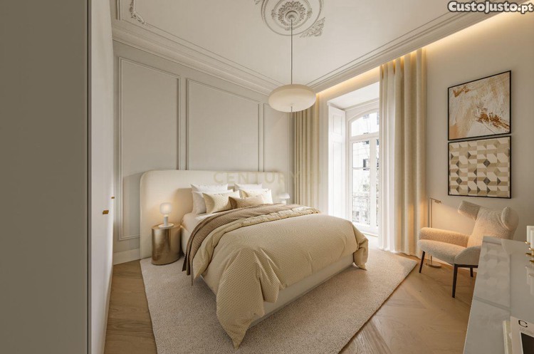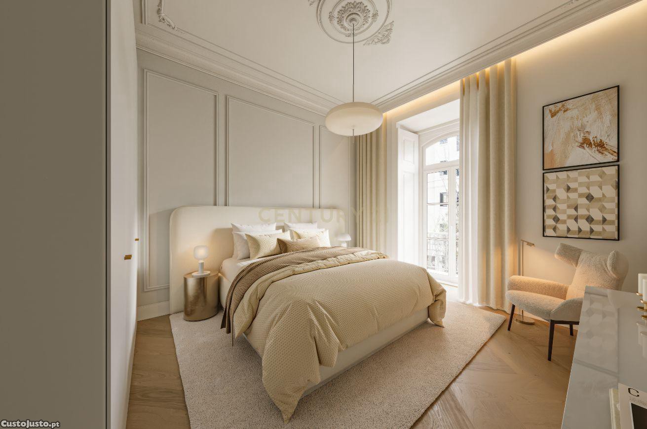 A zona privada inclui dois quartos confortáveis entre os quais uma suite principal que assegura maior privacidade sendo complementada por casas de banho elegantes com materiais cuidadosamente selecionados. Inserido num edifício histórico restaurado com elevado rigor arquitetónico o apartamento beneficia de pavimentos em madeira natural cozinhas contemporâneas totalmente equipadas e uma arquitetura interior moderna que preserva o carácter clássico do edifício proporcionando uma experiência residencial distinta.