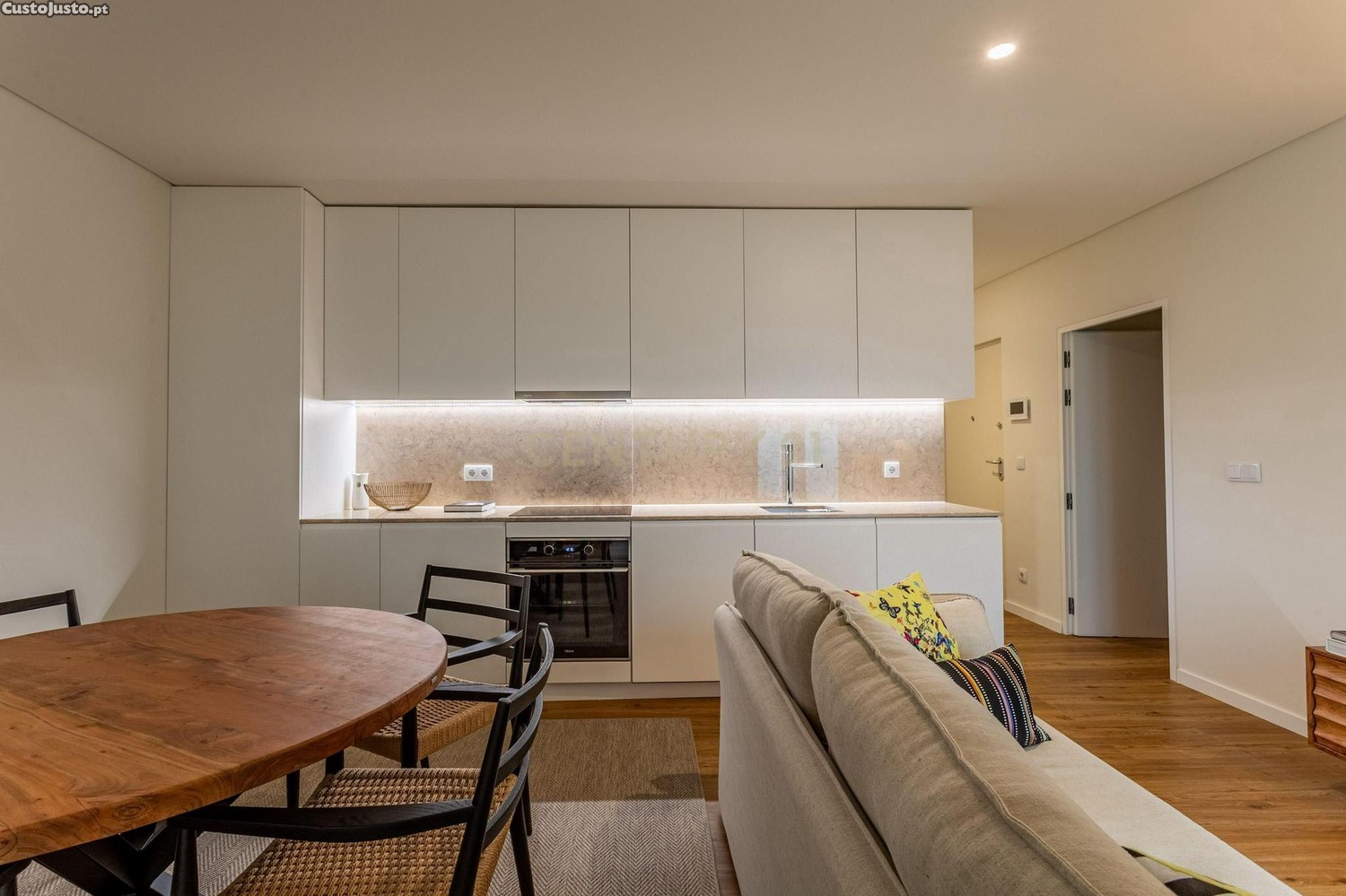 Este imóvel caracteriza-se pelos interiores minimalistas e confortáveis, realçados por mármore lioz e pavimento em madeira. Sala ampla de estar e jantar com boa luminosidade e logradouro que serve a mesma e o quarto, com enorme roupeiro. Cozinha totalmente equipada. Dispõe ainda de uma zona para um pequeno escritório ou closet e um amplo WC com cabine duche. Ótimos materiais e acabamentos, ar condicionado, janelas duplas e oscilo-batentes com excelente isolamento térmico/acústico.