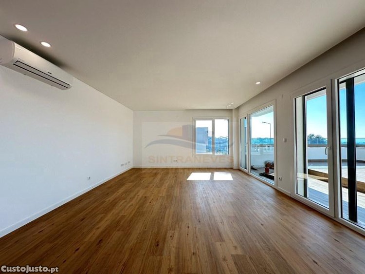 A entrada faz-se por um hall amplo que conduz a uma zona social generosa em open space, onde sala e cozinha se integram de forma harmoniosa, privilegiando a luz natural e a fluidez do espaço. A área exterior é um dos grandes destaques: um terraço com 49,92 m², ideal para momentos de lazer.