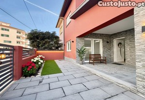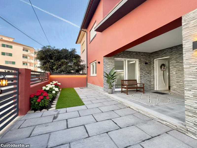 No exterior, há espaço lateral para estacionamento de duas viaturas, zona de lazer nas traseiras com churrasqueira, além de um espaço à frente da casa que pode ser aproveitado como jardim ou área adicional de convívio. Existe ainda um anexo que funciona como lavandaria e casa de máquinas.