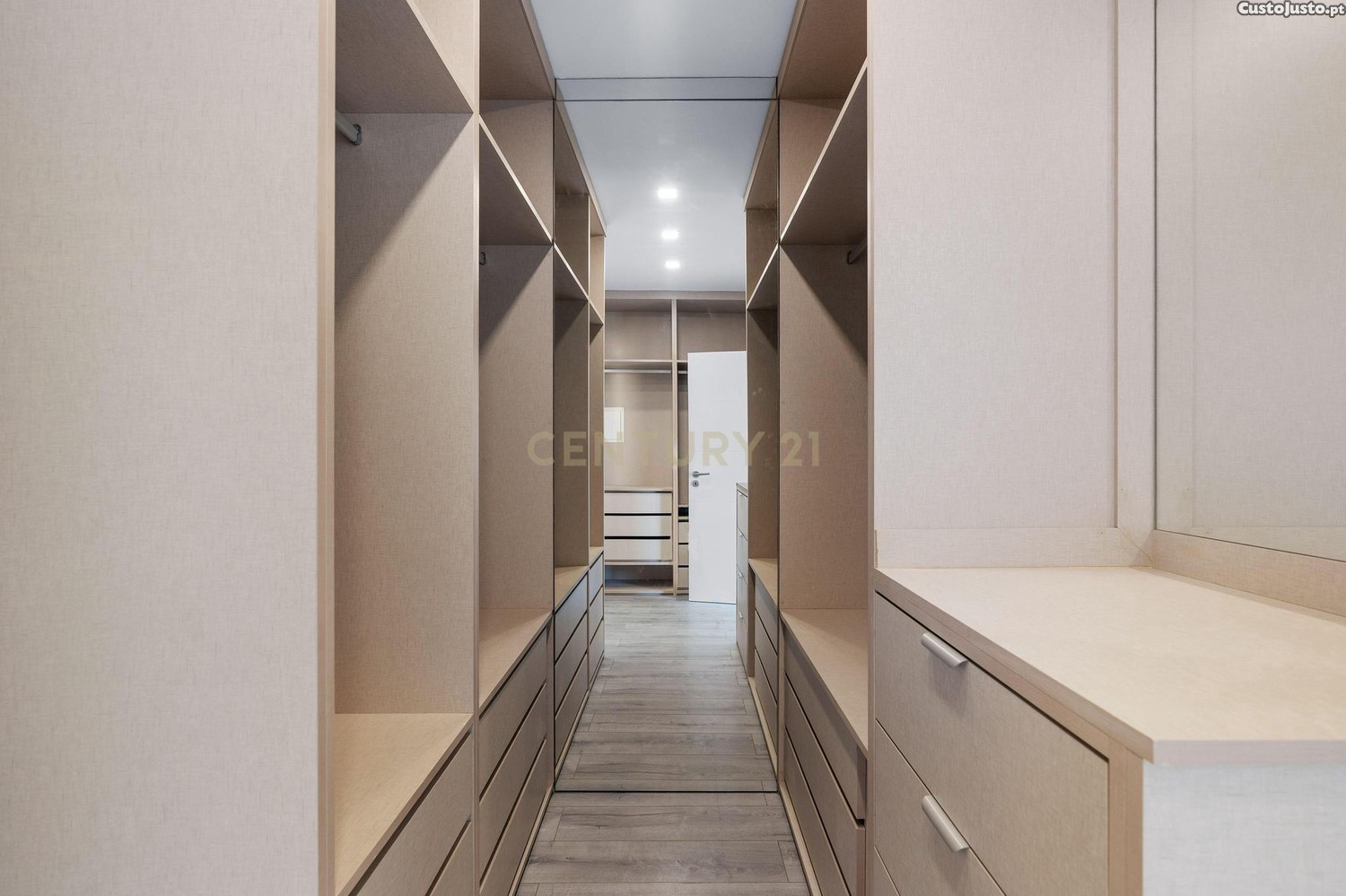 Primeiro Andar: Dedicado ao descanso e privacidade, com três suítes elegantes, todas elas com varandas privativas. A suíte principal é um verdadeiro refúgio, com um closet com espelho e cofre, enquanto as restantes suítes dispõem de roupeiros embutidos.