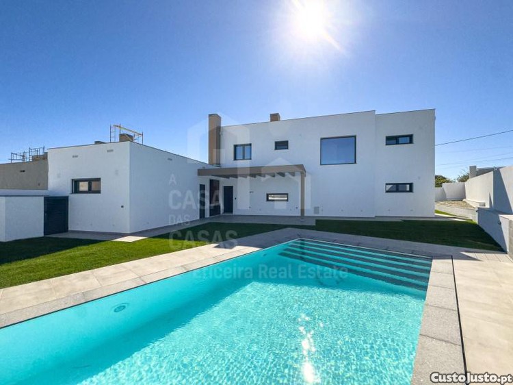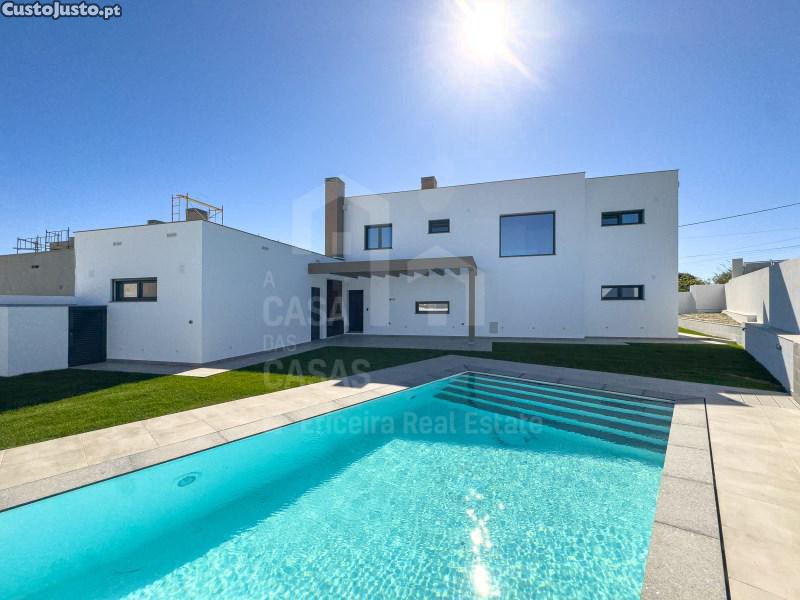 Moradia nova, com três suítes, piscina, jardim e vista de Mar.