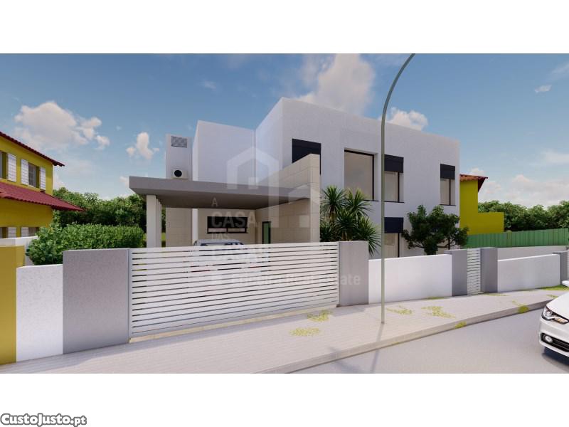 Moradia T4 nova em Mafra, com três suítes, garagem e churrasqueira.