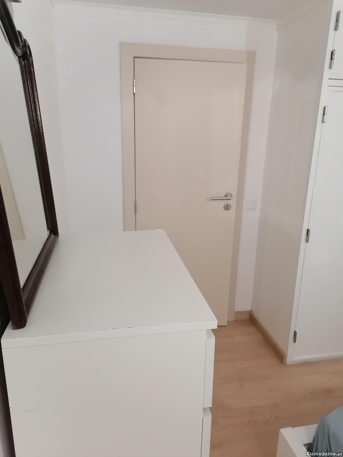 Um quarto mobilado com cama de casal, mesa de cabeceira, cómoda e roupeiros, incluídos em moradia, mas completamente independente da mesma, espaçoso e bem iluminado de luz natural, com serventia de cozinha com sala comum e casa de banho, com sala de estudo, com tv e internet disponíveis e uma dispensa. Totalmente mobilidao com sofá e mesa de sala e cozinha com 4 cadeiras, frigorifico, placa e forno eléctrico, bem como micro ondas e máquina de lavarsecar. Local e ambiente sossegados de fácil acesso a todos os meios de transporte; autocarros comboios. Muito perto do centro da Parede.