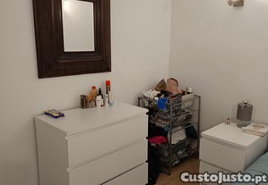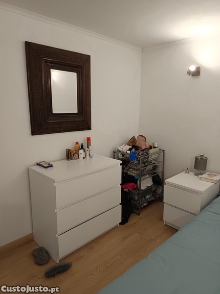 Quarto mobilado com cama casal, mesa cabeceira, comoda e roupeiros em moradia, mas independente da mesma, espaçoso e bem iluminado, com cozinha. sala comum, casa dde banho, dispensa. Totalmente mobilado com sofa e mesas de sala e cozinha.. Com todos os electrodomesticos: frigorifico, maquina lavar/secar, placa com forno electrico, micfro ondas. Muito perto do centro da Parede, com facil acesso a transportes. Onde tem os CTT, bancos, cabeleireiros, ginasios, farmacias, cafe/pastelaria e todos os tipos de lojas de ramos.