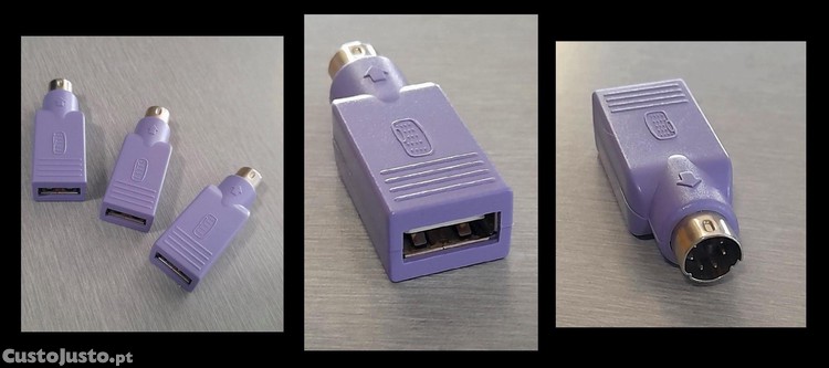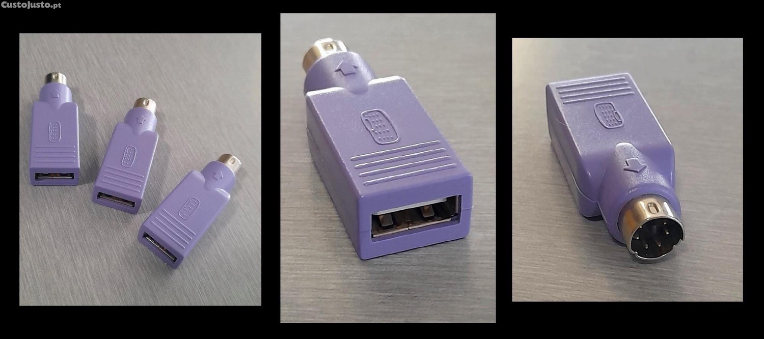 Adaptador PS/2 Macho para USB Fêmea, novo, várias unidades, excelente estado.
