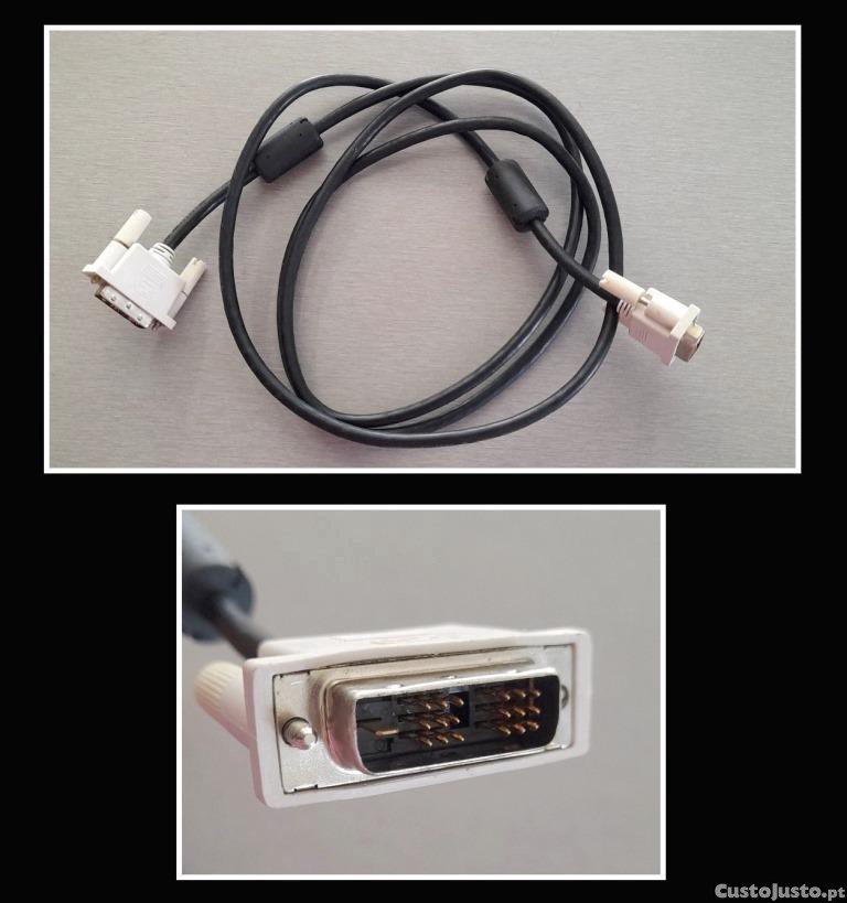 Cabo DVI-D (Single Link), Macho/Macho, com 18 pinos, 180cm de comprimento, excelente estado.