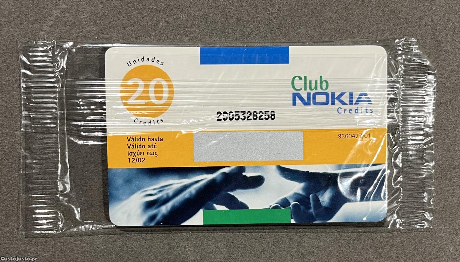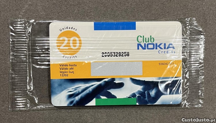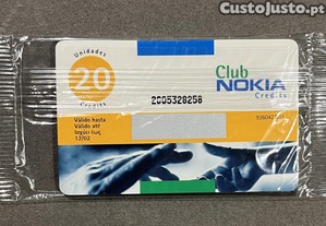 Cartão vintage do Clube Nokia Credits em estado novo, ainda selado, com validade até 12/02.