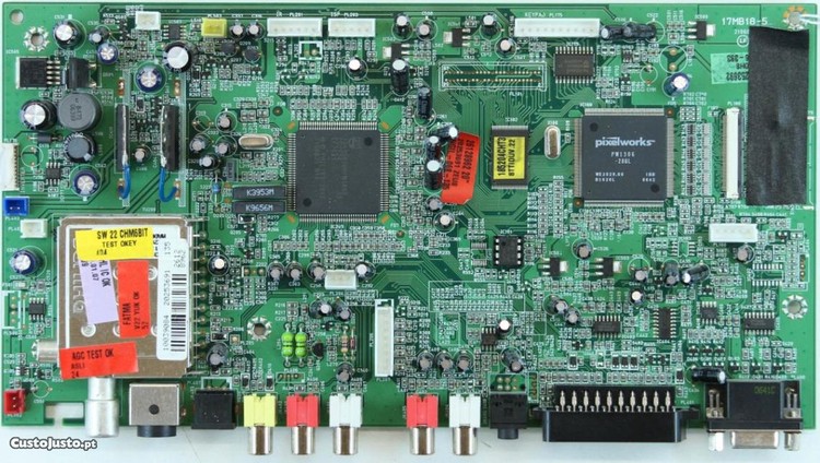 fucional retirada e guardada de tv partido em transporte,stock de placas antigas da oficina , ainda pode ajudar alguem que precise a foto e aliatoria mas rigurosamente igual deve ler bem a descriçao do anuncio posiçao das fichas e outros conferem com a foto. em caso de necessidade posso enviar a foto da placa em questao qualquer esclarecimento ligue 962982416