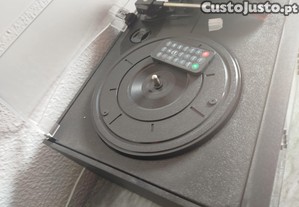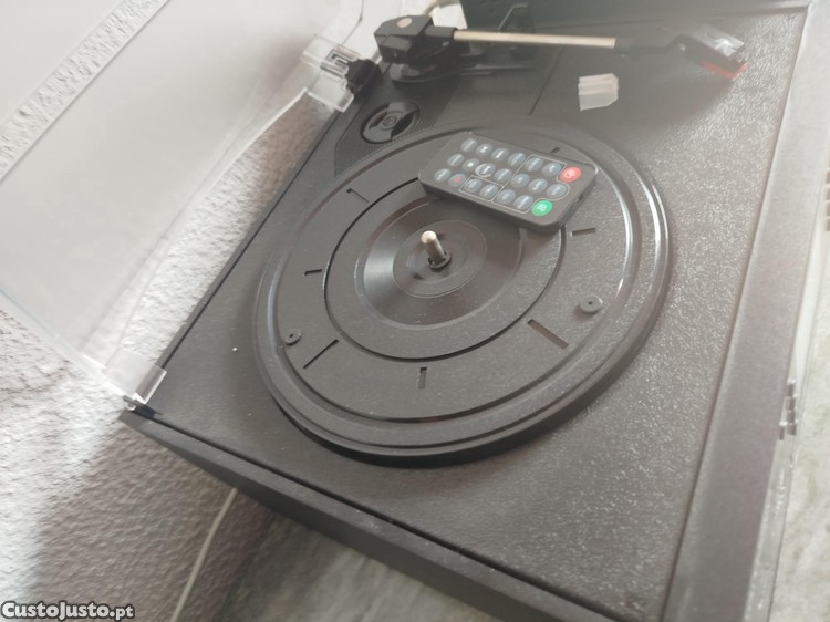 Funções de gira-discos, CD, cassete e rádio.
