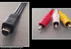 Cabo de Conexão 'Sony Handycam', novo, conector de 10 pinos, com três conectores machos RCA, em preto, comprimento de 1,5MT, excelente estado.