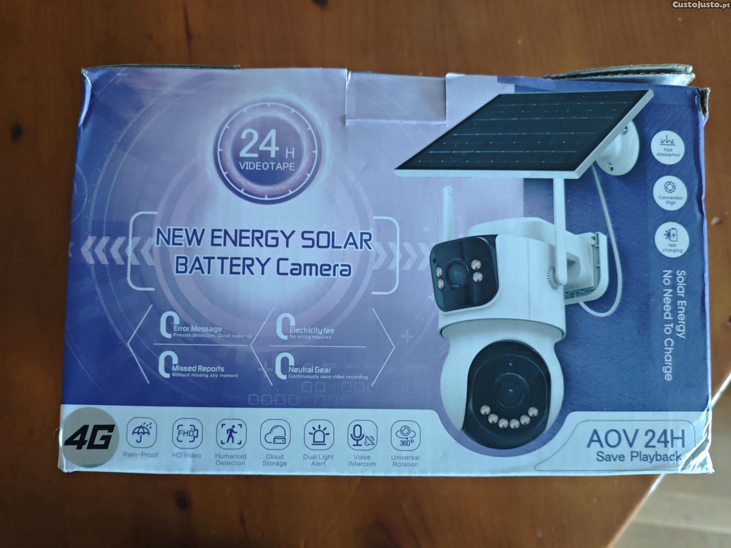Preço: 45 €Câmera Solar 4G Dual Lens AOV 24H Contínua - Nova em Caixa!