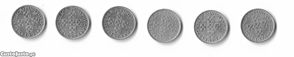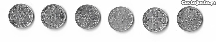 6 moedas de 10 centavos. Portugal 1971,72,75,76,77 e 78. Alumínio, diam. 15mm e peso 0,50 gr. Posso vender isoladamente 50 cent. cada.