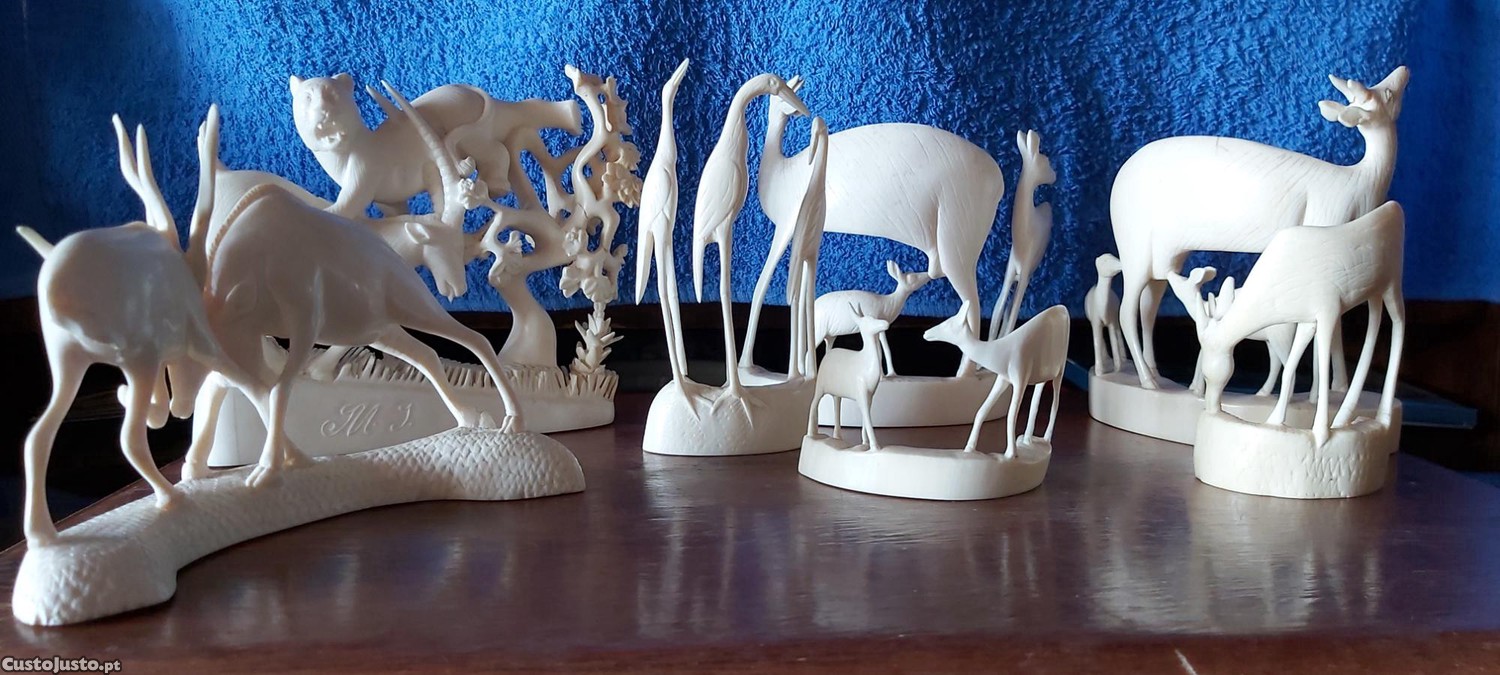 Preço: 260 €7 peças diversas (animais) em marfim antigo (1974) de Angola, com 0,864 Kg de peso.