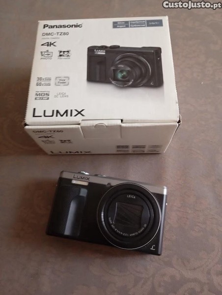 Maquina Panasonic Lumox TZ80, com bateria não carregada, fio para ligar a eletricidade e respetiva caixa.